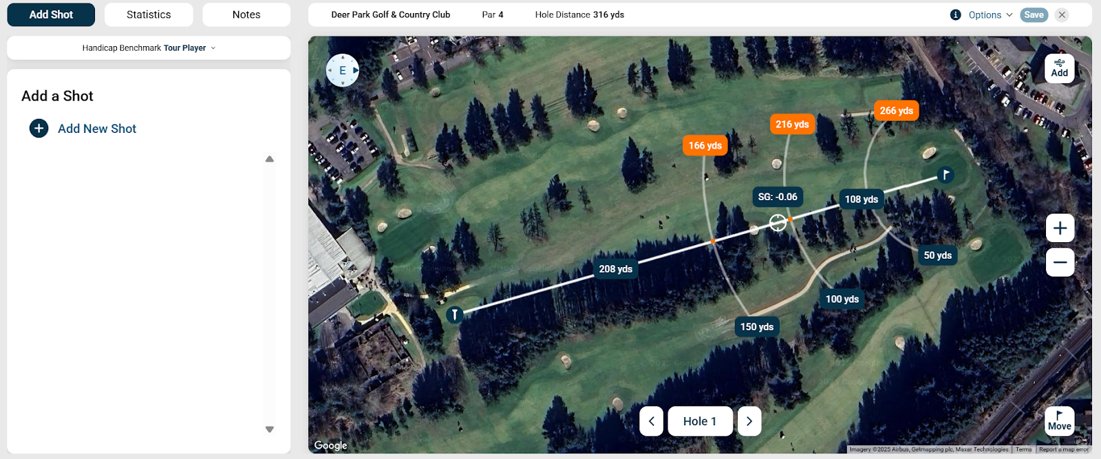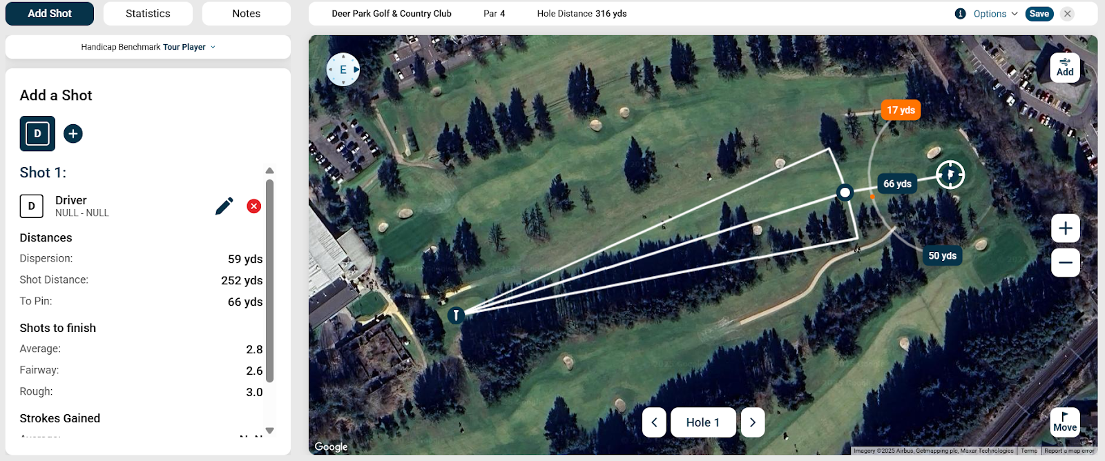 The Add a Shot menu will appear, displaying your clubs along with their P-Avg distance and dispersion.