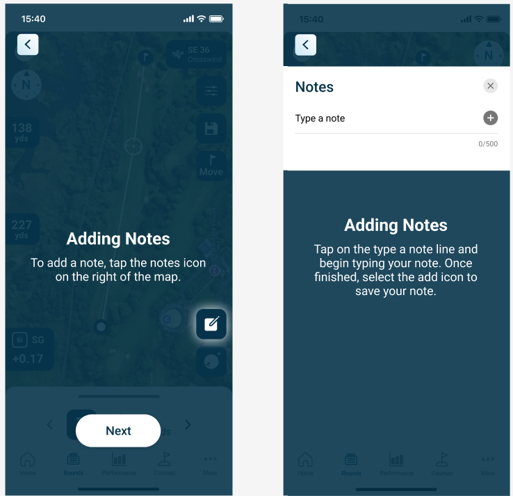 You can add up to 3 notes per hole to help plan your strategy or record important details.